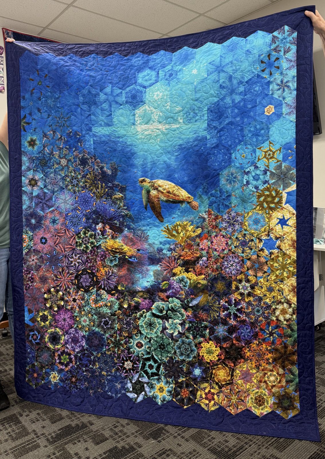 | Requirements: | Sewing machine and basic sewing supplies. 7 Identical panels from the same bolt, flower pins, blunt tip 60 degree ruler is preferred, Pen or pencil, and a 24" ruler. A personal iron, cutting mat, and rotary cutter are highly recommended |