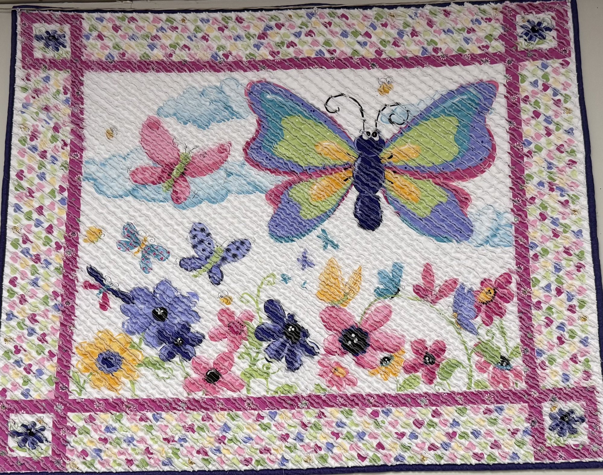 | Requirements: | Sewing Machine and basic sewing supplies, quilting foot, 505 Spray, Sharp Scissors, or chenille cutter(recomended). 3 identical panels, marking pen. |